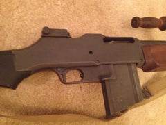 Beautiful, Museam quality M1918a2 display gun.  Nice parts, mostly WWII era and set up like a WWII Production gun.  HSA 9-53 barrel, dummy steel receiver with spring loaded dummy bolt.  Ultra detailed, has faux bolt rail rivets, bolt guide, stop lever hole machined.  It has the early WWII Gas regulator and the Monopod knotch in the butt stock.  Repro (?) Kerr No-Buckle sling.  The mag has spring removed so non-functional.  top is stamped: